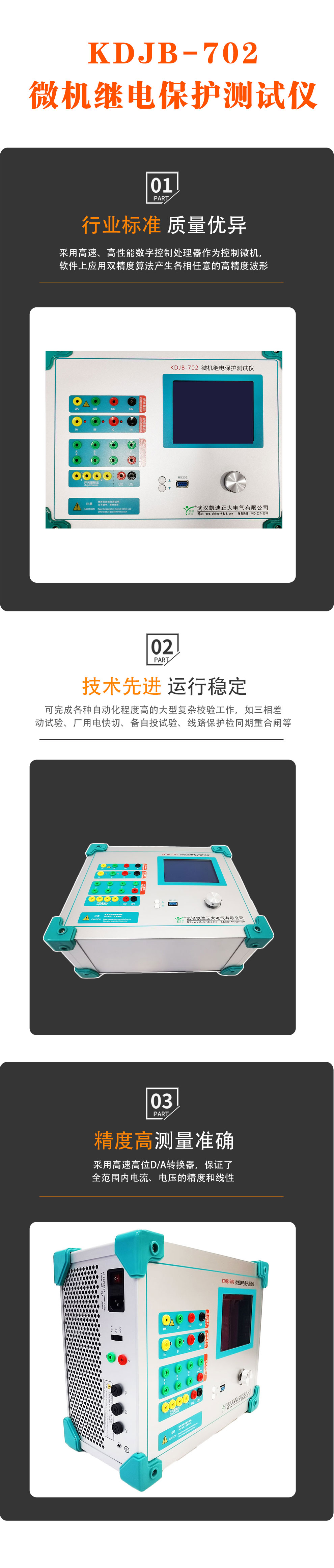 KDJB-702微機繼電保護校驗儀是在參照電力部頒發的《微機型繼電保護試驗裝置技術條件(討論稿)》的基礎上,廣泛聽取用戶意見,總結目前國內同類產品優缺點,充分使用現代新的的微電子技術和器件實現的一種新型小型化微機繼電保護測試儀。它采用單機運行,亦可聯接筆記本電腦運行的新的結構。主機內置新一代高速數字信號處理器微機、真16位DAC模塊、新型模塊式高保真大功率功放,自帶大屏幕液晶顯示器以及靈活方便的旋轉鼠標控制器。單機操作即已具有很強的功能,可進行大多數試驗,聯接電腦運行的操作功能。具有大型測試儀優越的性能、新的的功能,又具有小型測試儀小巧靈活、操作簡便、可靠性高等優點,性能價格比高。是繼保工作者得心應手的好工具。