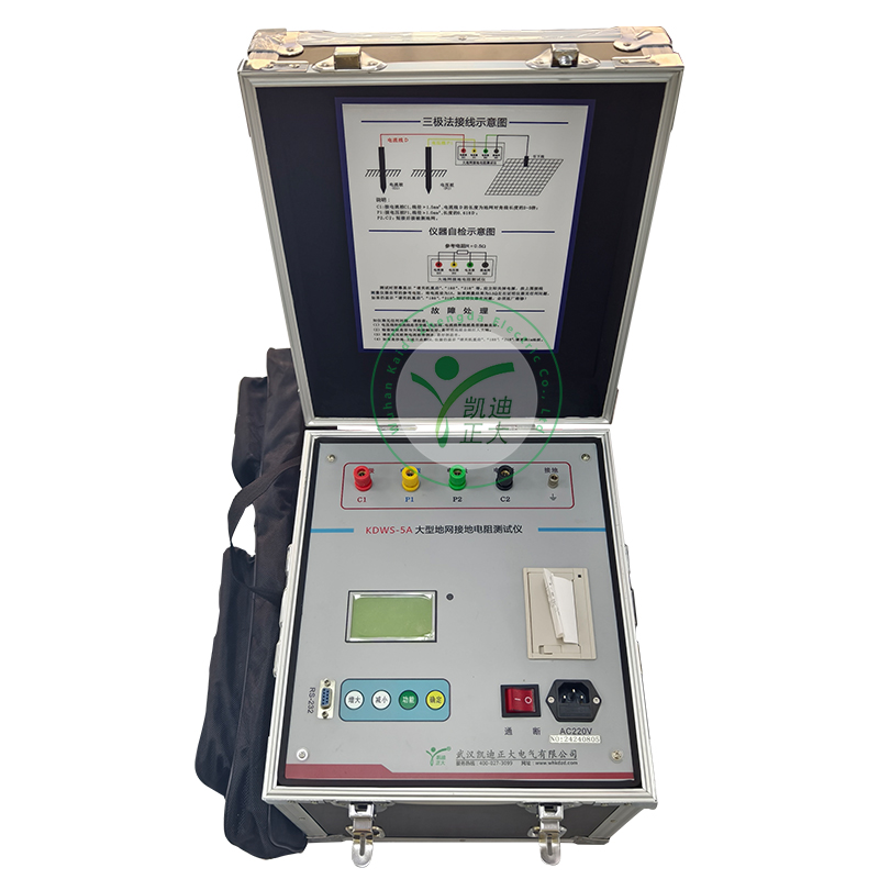 KDWS-5A型大型地網(wǎng)接地電阻測(cè)試儀,可測(cè)變電站地網(wǎng)(4Ω)、水火電廠、微波站(10Ω)、避雷針(10Ω)多用機(jī)型,采用了新型變頻交流電源,并采用了微機(jī)處理控制和信號(hào)處理等措施,很好的解決了測(cè)試過(guò)程中的抗干擾問(wèn)題,簡(jiǎn)化了試驗(yàn)操作過(guò)程,提高了測(cè)試結(jié)果的精度和準(zhǔn)確性,大大降低了試驗(yàn)人員的勞動(dòng)強(qiáng)度和試驗(yàn)成本。