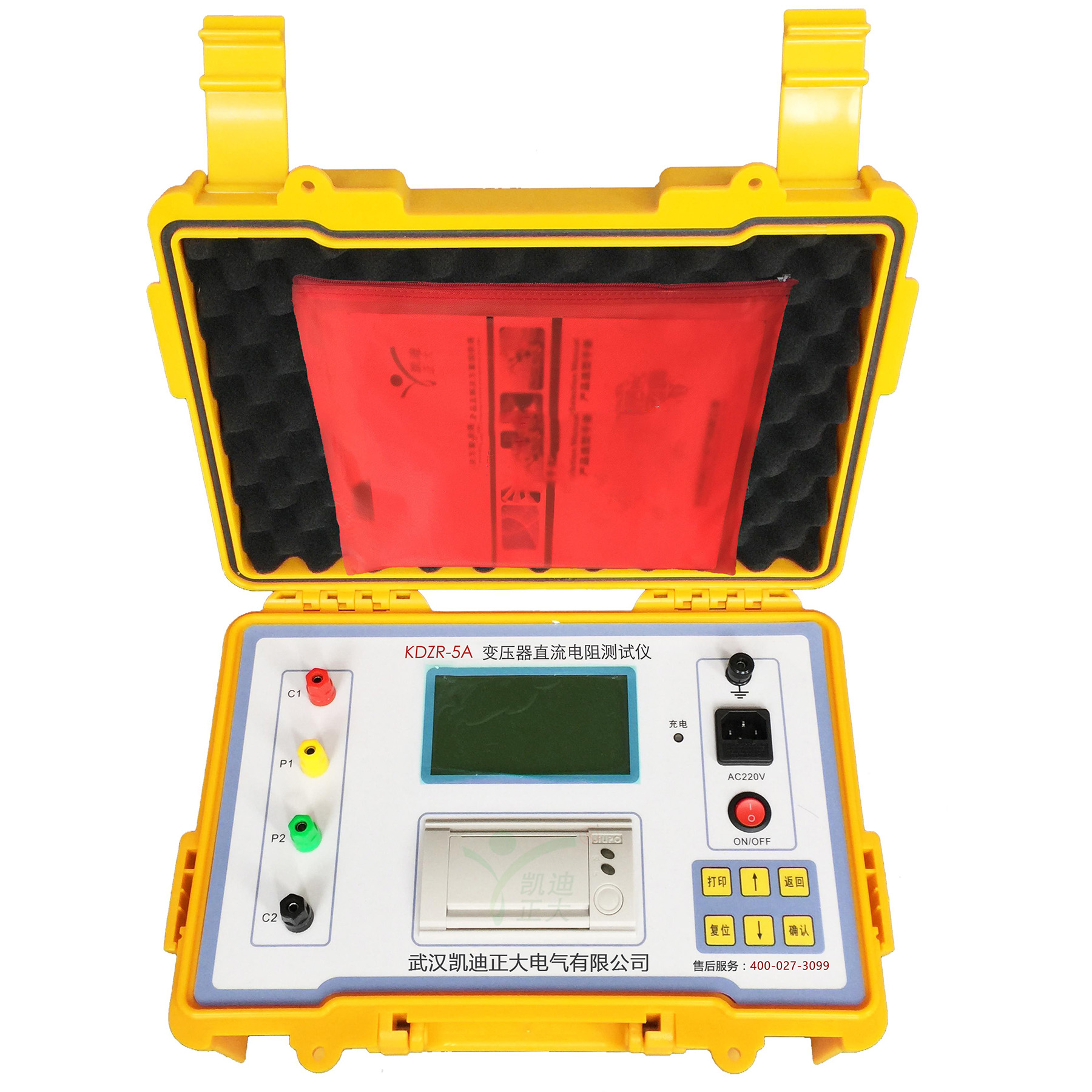 KDZR-5A 變壓器直流電阻測試儀界面設計采用微機控制,大屏幕背光漢字液晶屏顯示,操作簡便、顯示清晰人機交互界面友好,測量過程及儀器工作狀態提示明確充分,不需操作人員記憶過多的規程;采用電流源線性補償技術,測試穩定、測量精度高、速度快,提高了測量效率,減輕了操作人員的工作強度。技術上采用“四端”測量,消除引線電阻與接觸引起的測量誤差。有過壓防護功能,能防反電動勢沖擊。面板式打印機可快速打印測量結果(選用)。體積小、重量輕、攜帶方便。