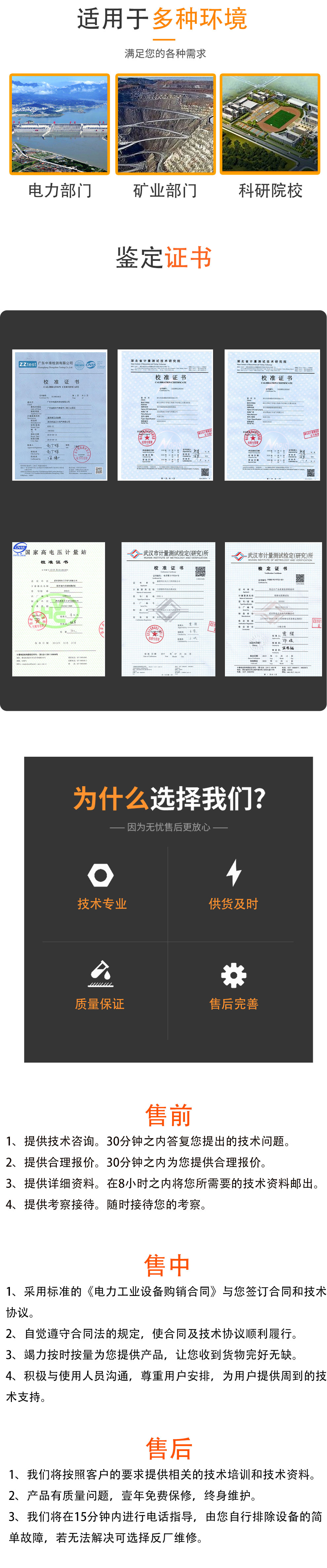 1.檢測(cè)電纜電壓等級(jí):220V、380V、6kV、10kV、35kV、110kV、220kV