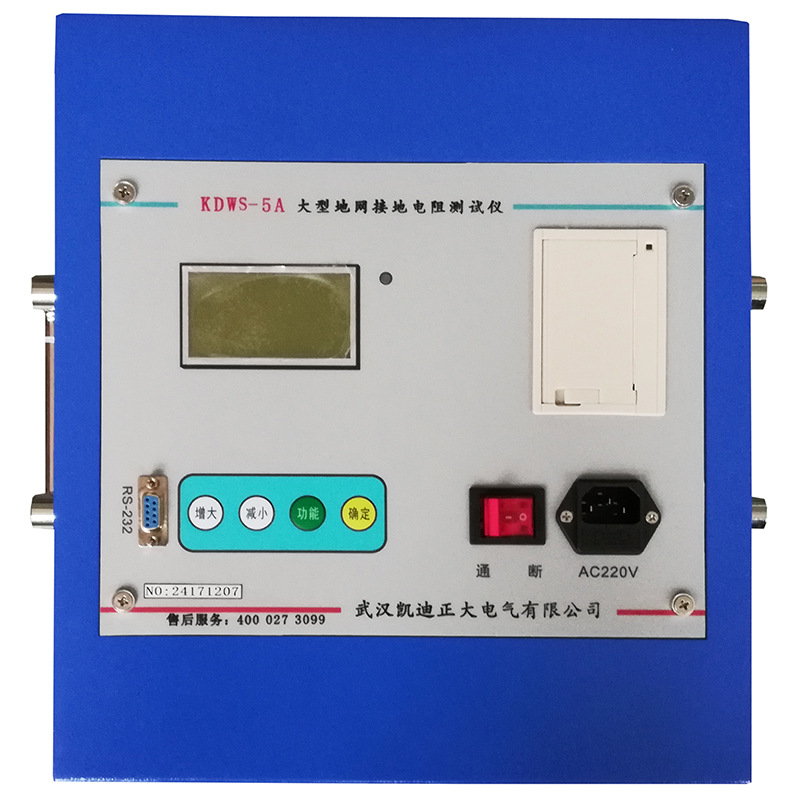KDWS-10A型大型地網接地電阻測試儀,可測變電站地網(4Ω)、水火電廠、微波站(10Ω)、避雷針(10Ω)多用機型,采用了新型變頻交流電源,并采用了微機處理控制和信號處理等措施,很好的解決了測試過程中的抗干擾問題,簡化了試驗操作過程,提高了測試結果的精度和準確性,大大降低了試驗人員的勞動強度和試驗成本。