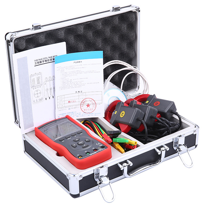 主機:1件;電流鉗:3件;測試線:4條;RS232數據線:1條;光盤:1個;電池(LR6):6節;儀表箱:1件