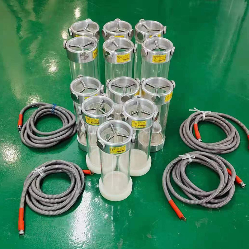 目前電纜廠均擁有多條 XLPE 生產線,但只有一套局部放電檢測設備。若采用我公司的專用終端,和剝削工具。將使局放實驗簡單宣行,可將試驗準備工序時間減少一半,事半功倍。終端雖小,效益大!它是由有機玻璃管、電纜端頭固定法蘭、高壓屏蔽罩組成,整體為懸掛式。性能優,使用方便、安全可靠。