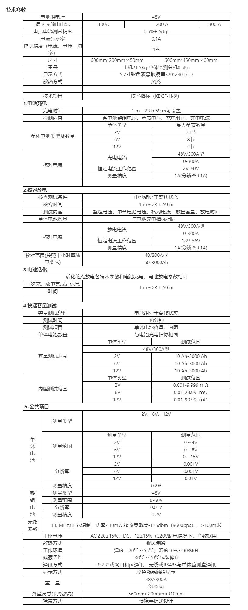 • KDZD886 蓄電池綜合一體機具有:集充電、放電、活化、快速核容和在線監測功能為一體,功能齊全,一機多用;