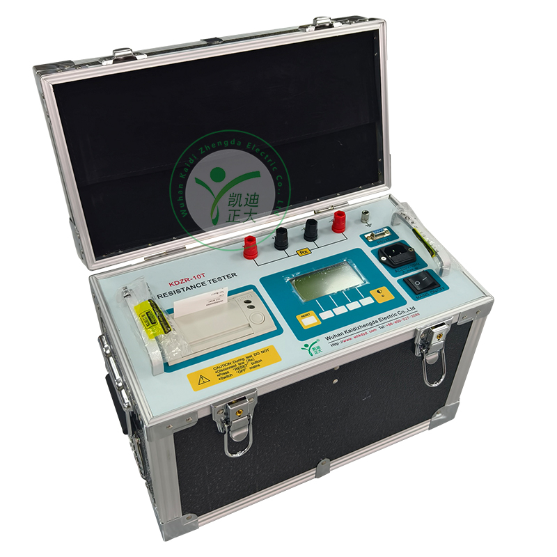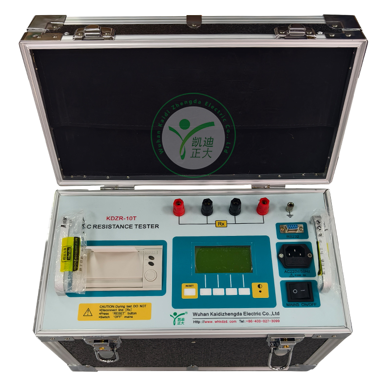 KDZR-10A 直流電阻測試儀采用程控線性恒流源技術,具有輸出電流大,電流檔位多,體積小,重量輕等特點。整機由單片機控制,自動完成自檢、數據處理、顯示、保存、打印等功能,采用精密電子測量技術,使得儀器測量精度高,測量范圍寬,操作簡便,可實現變壓器和電壓互感器的感性電阻快速測量。