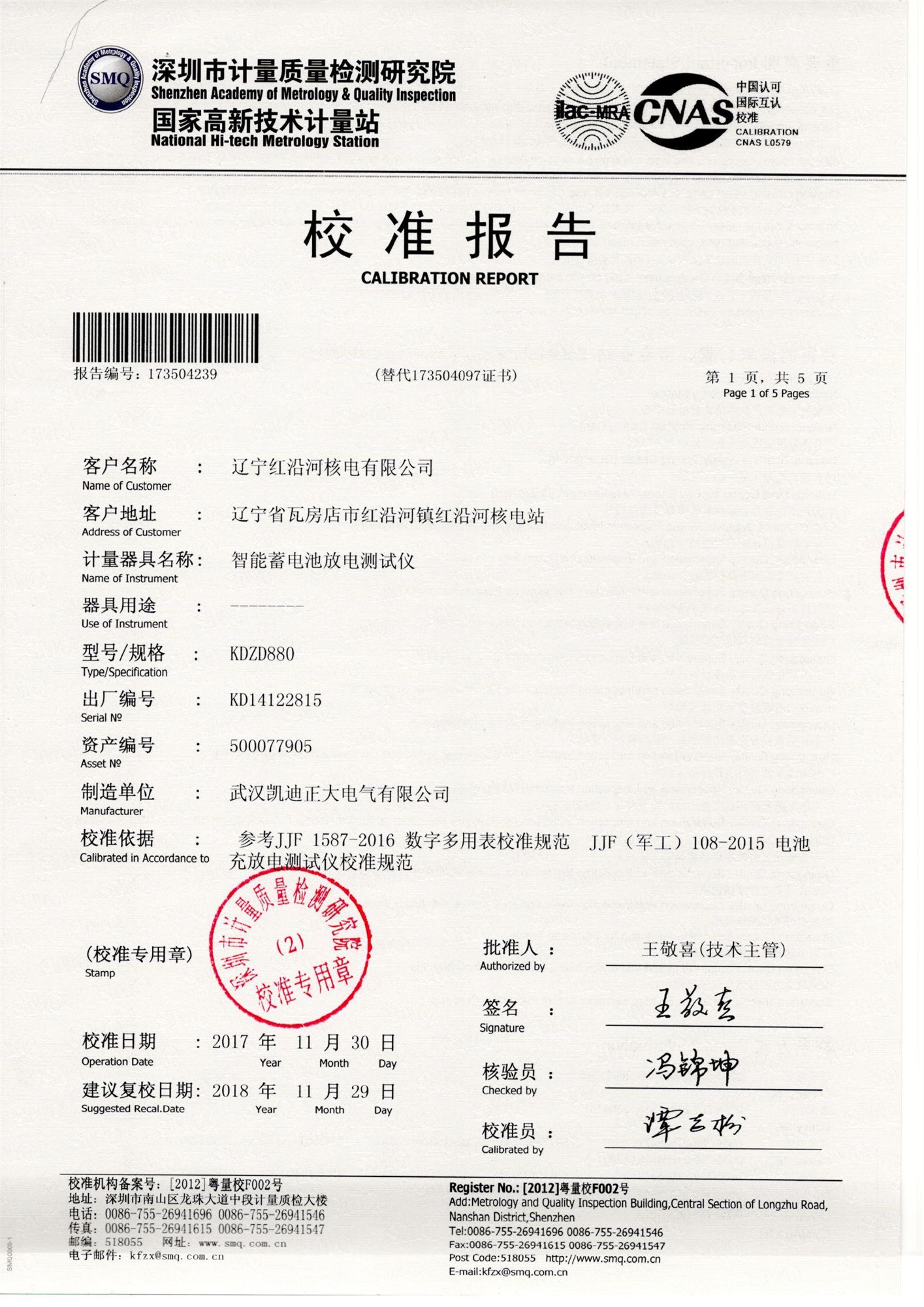 ![]() 湖北省計量測試技術(shù)研究院校準證書 |