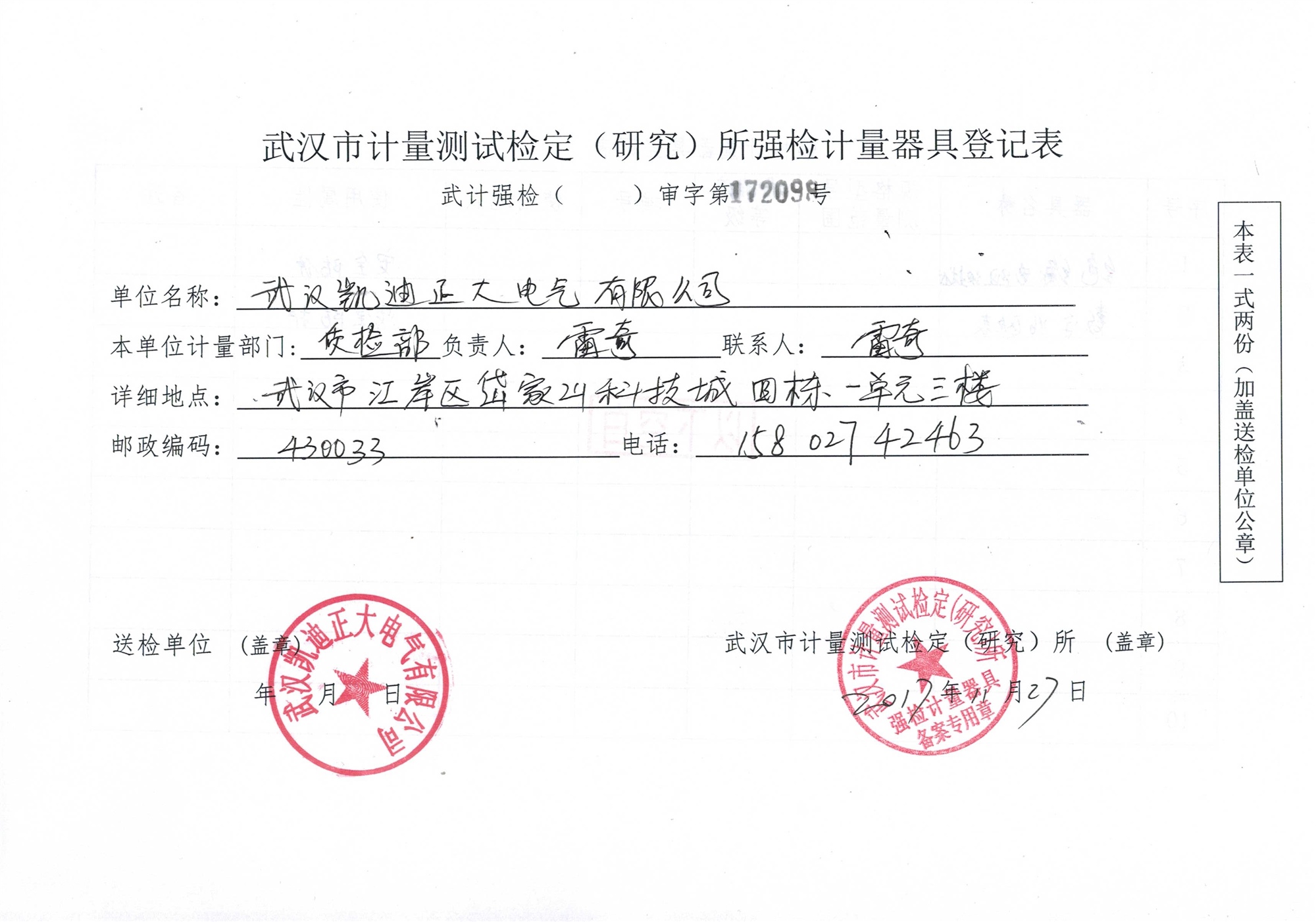 ![]() 武漢市計量測試檢定(研究)所“強檢計量器具證” |