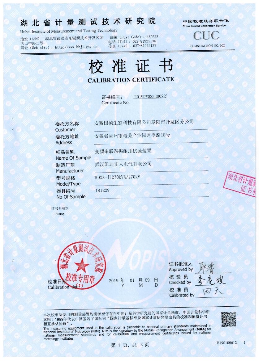 ![]() 國家高電壓計量站-KDZD880校準證書 |