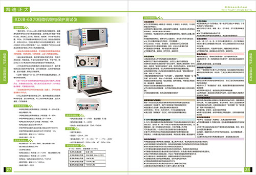 上次介紹了《2018產品選型手冊來了》繼電保護,互感器測試KDHG-518 變頻CT/PT互感器特性測試儀,KDJB-30三相微機繼電保護測試儀,這次要介紹繼電保護,互感器測試KDJB-60六相微機繼電保護測試儀集工控機,Windows嵌入式操作系統內置觸控板,觸摸屏和具有專有設計技術的全編碼鍵盤,如通筆記本電腦一樣操作方便,高性能工業總線,觸控板,觸摸屏,DSP數字信號處理,FPGA,CFC儲存等各種高新技術之大成,獨創動態跟蹤技術,采用24位DA,可輸出每周波1600點的高精度波形,保證小電流(0-200mA)的絕對誤差<mA,徹底解決了500KV以上超高壓繼電保護工作的小電流精度問題。