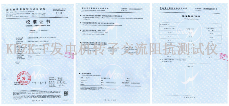 凱迪正大發電機轉子交流阻抗測試儀取得專業校準證書