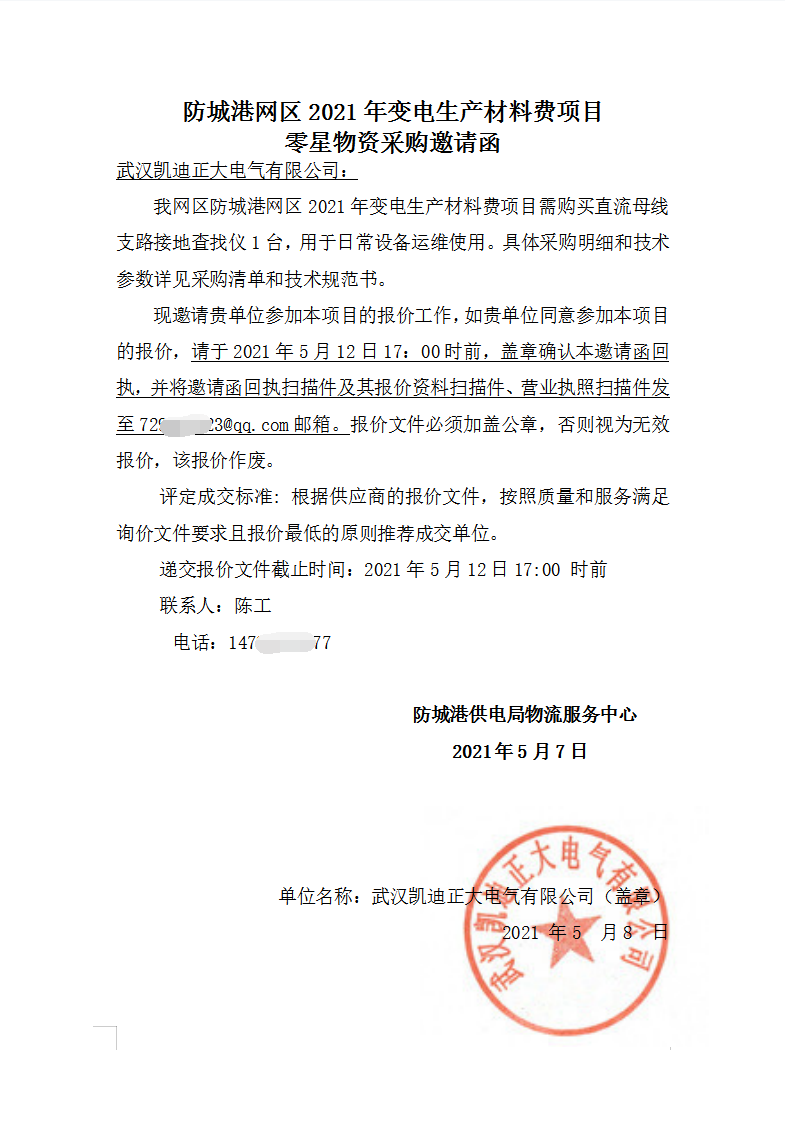 防城港網(wǎng)區(qū)2021年變電生產(chǎn)材料費(fèi)項(xiàng)目零星物資采購邀請函
