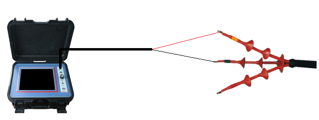 先將雙夾測試線接至(預(yù)定位儀后側(cè)板)采樣端口,再將測試線的紅夾子夾在電纜的一個(gè)好相,黑夾子夾在電纜的另一個(gè)好相。