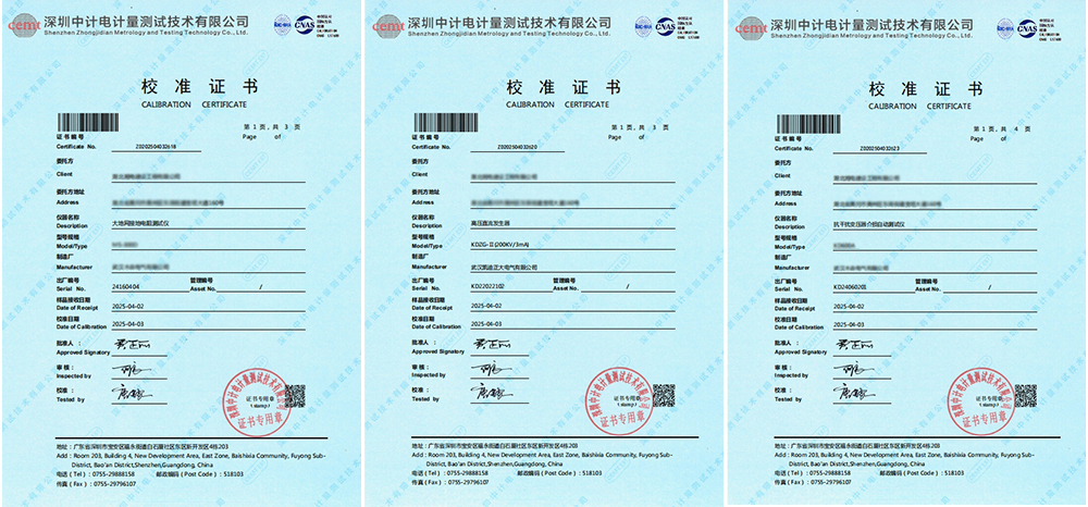 近日,湖北某電建設工程有限公批量采購武漢凱迪正大的近二十余套電力設備已經全部順利通過深圳中計電計量測試技術有限公司的專業校準,并成功獲得了校準證書。這一消息不僅彰顯了湖北某電建公司對武漢凱迪正大品牌的深度信任,也再次證明了武漢凱迪正大在電力設備制造領域的品質與可靠實力。