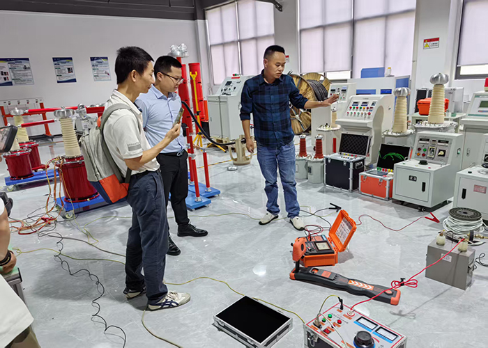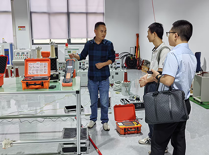 訪問伊始,代表團在凱迪正大技術(shù)人員的陪同下參觀了產(chǎn)品展廳。展廳內(nèi)陳列著凱迪的系列產(chǎn)品,如:六相微機繼電保護測試儀、工頻耐壓試驗裝置、回路電阻測試儀等等,展現(xiàn)了公司在電力測試領(lǐng)域的技術(shù)積累。技術(shù)人員詳細(xì)介紹了各產(chǎn)品的性能特點及應(yīng)用場景。