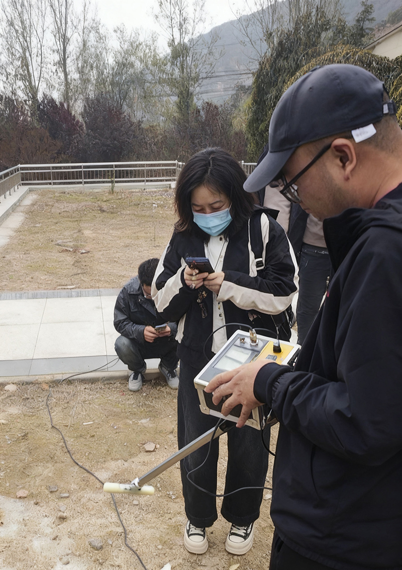 在室外場地,技術人員演示了如何使用磁感應探測棒進行電纜路徑探測,并通過峰值法/空值法判斷電纜走向與埋深。隨后,現(xiàn)場演示了差分電位法定位接地故障的操作流程,包括A字架的使用、方向指示燈判斷、信號強度分析等關鍵步驟。