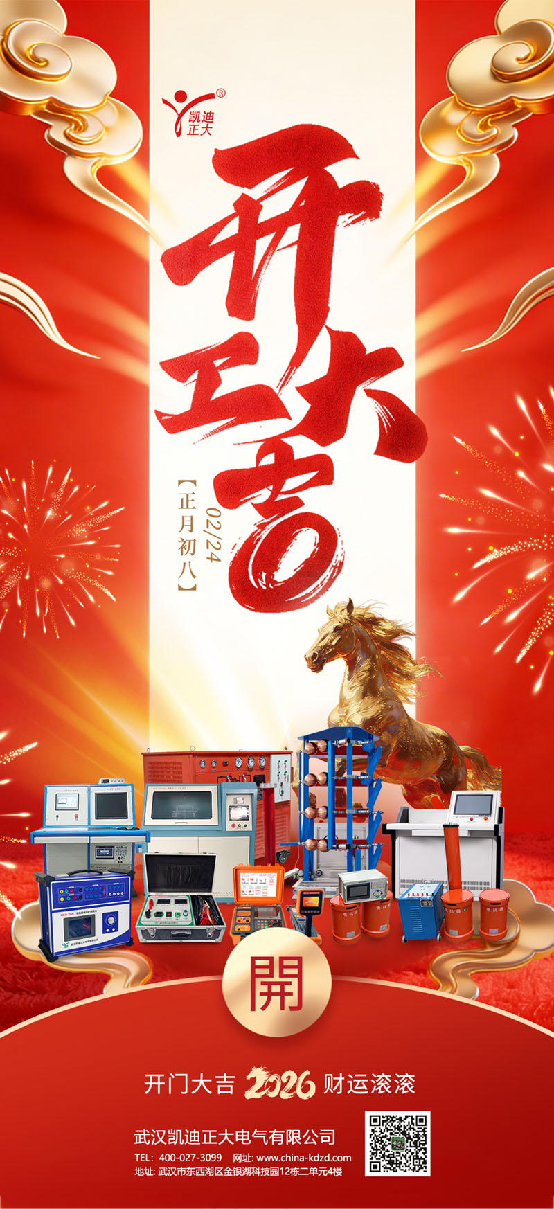春風浩蕩,征程萬里。2026年2月24日,農歷正月初八,在這寓意著“八方來財、萬象更新”的吉祥日子里,武漢凱迪正大有限公司迎來了新年開工。全體凱迪正大人整裝待發、精神抖擻,以嶄新的面貌和飽滿的熱情,共同開啟2026年的奮斗征程!